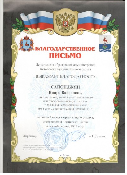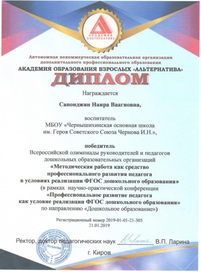 Сапонджян Наира Ваагновна - воспитатель группы "Лучики" (младшая разновозрастная группа)